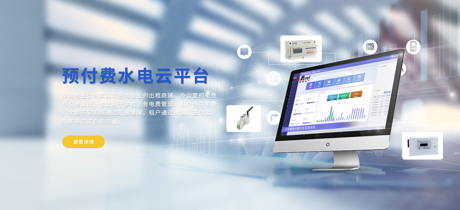安科瑞提供的解決方案包括Acrel-EIoT能源物聯網云平臺、變電所運維云平臺、安全用電管理云平臺、環保用電監管云平臺智慧消防云平臺能源管理云平臺、工業企業能源管控平臺、遠程預付費云平臺餐飲油煙監管云平臺電動汽車/電瓶車充電樁收費管理云平臺、電力監控/無線測溫系統、電能質量治理系統、電氣火災監控系統、消防設備電源監控系統、防火門監控系統應急照明和疏散指示系統、智能照明控制系統、醫用隔離電源絕緣監測系統等,幫助用戶實現能源智能化、可視化、精細化管理,提高用能效率和用能安全,為企業節能降耗和實現能源數字化建設提供數據服務。